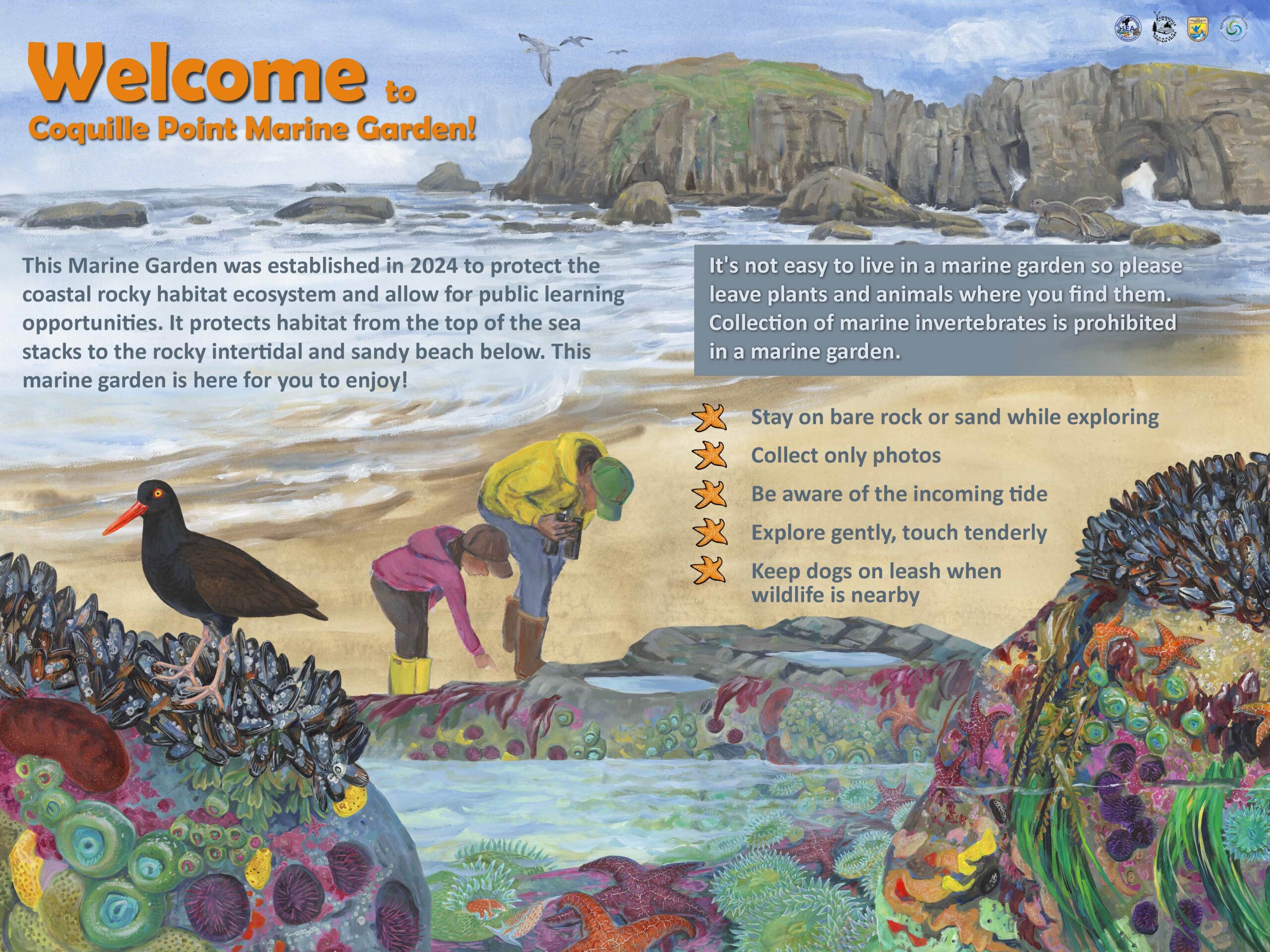Low tides provide opportunities for tidepool exploration. A Marine Garden designation helps to preserve the quality of our lives as well as the lifeforms linked with the coastal rocky habitat ecosystem. Learn more about this unique ecosystem (see species fact sheets below).